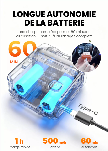 Contenu du colis: 1* Rasoir électrique + 1* Câble de charge + 1* Brosse + 1* Manuel d'utilisation