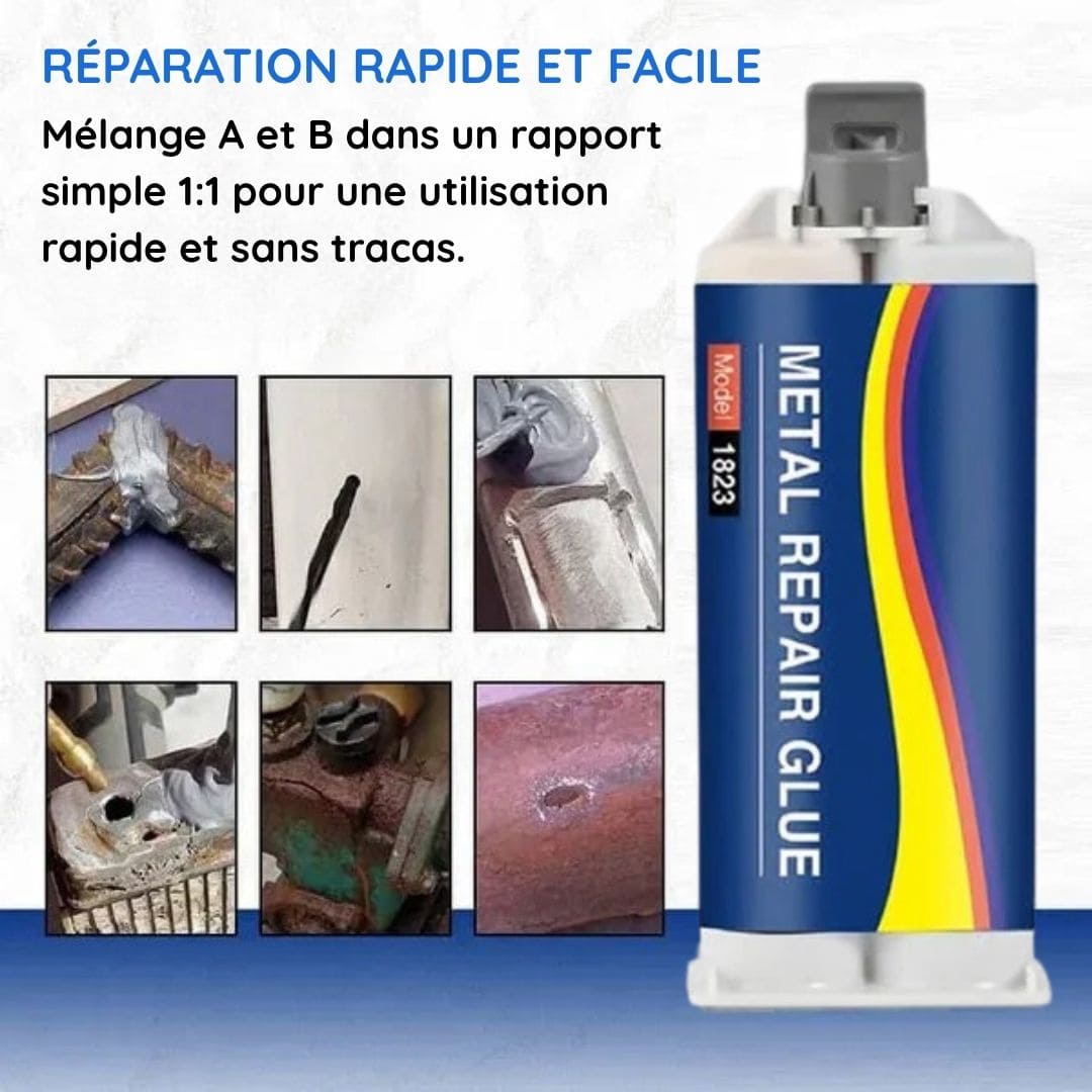 Grâce à sa formule avancée de colle industrielle AB 2 en 1, cet adhésif remplace efficacement les méthodes de soudure traditionnelle.
