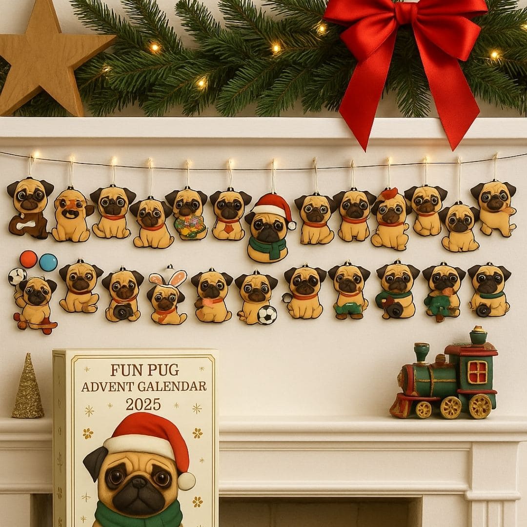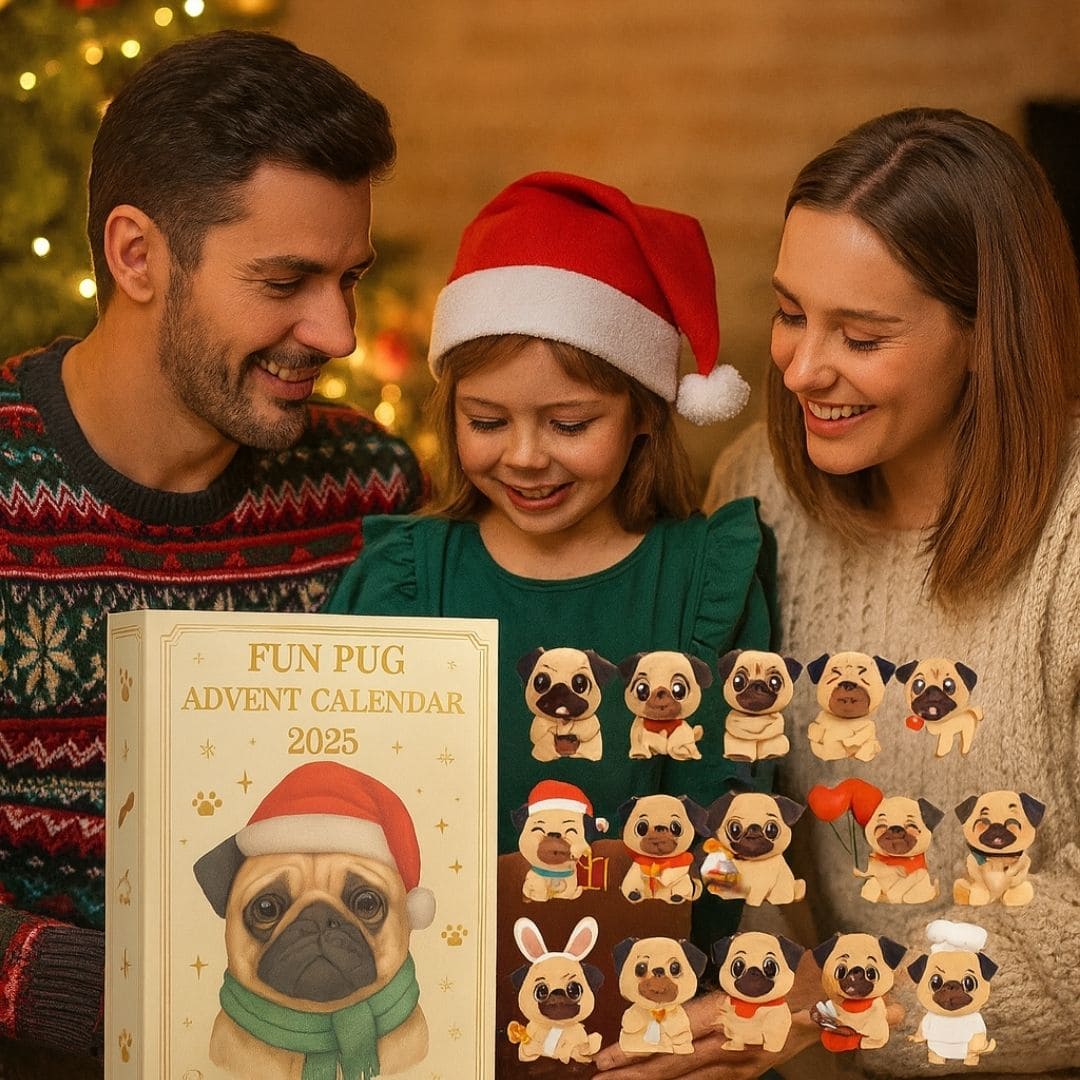 Chaque jour de décembre, ouvrez une case et découvrez un carlin différent, en posture rigolote ou costumée. Un moment de joie simple à partager en famille ou à savourer seul avec un sourire.