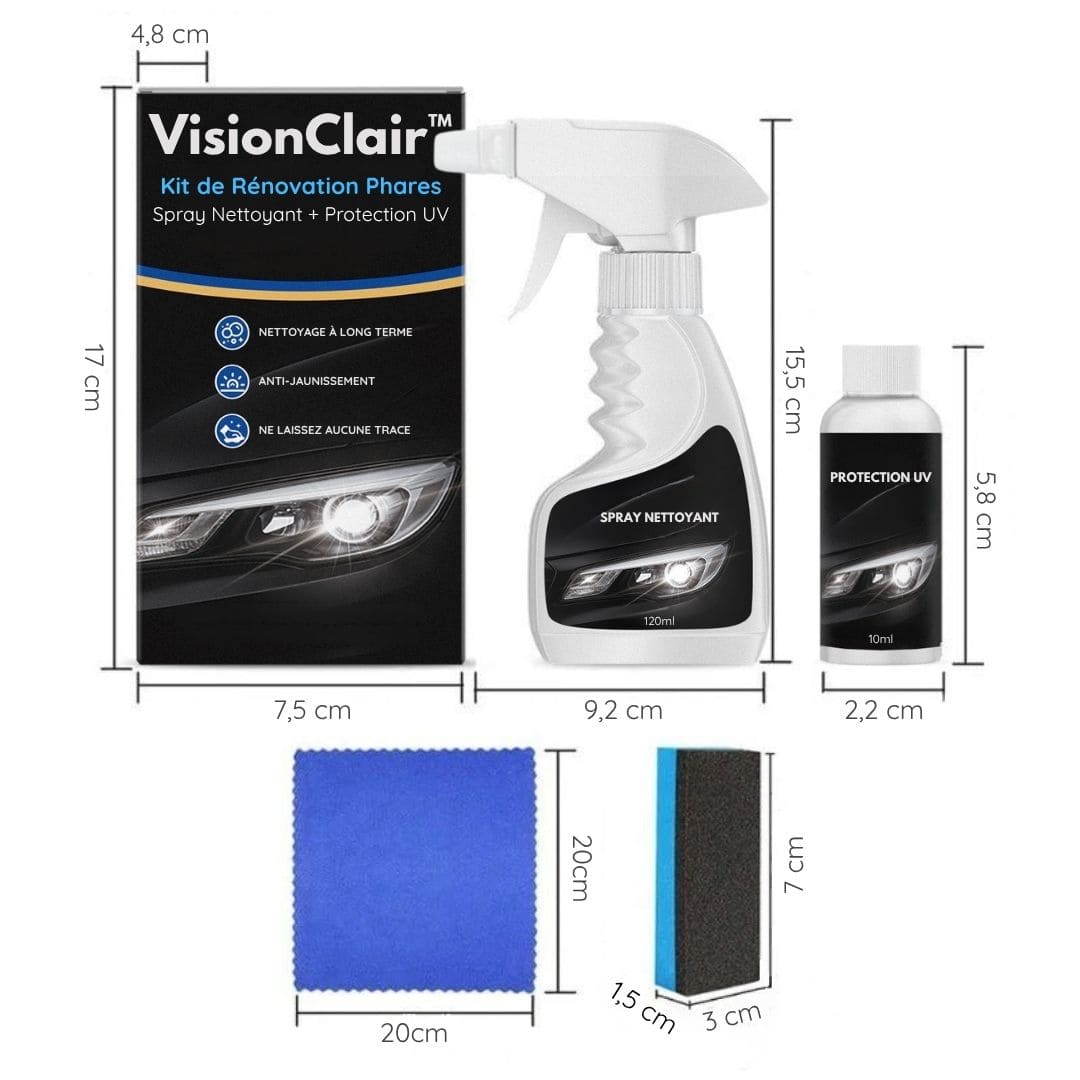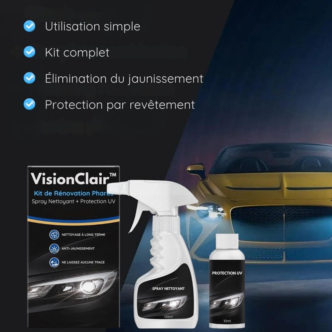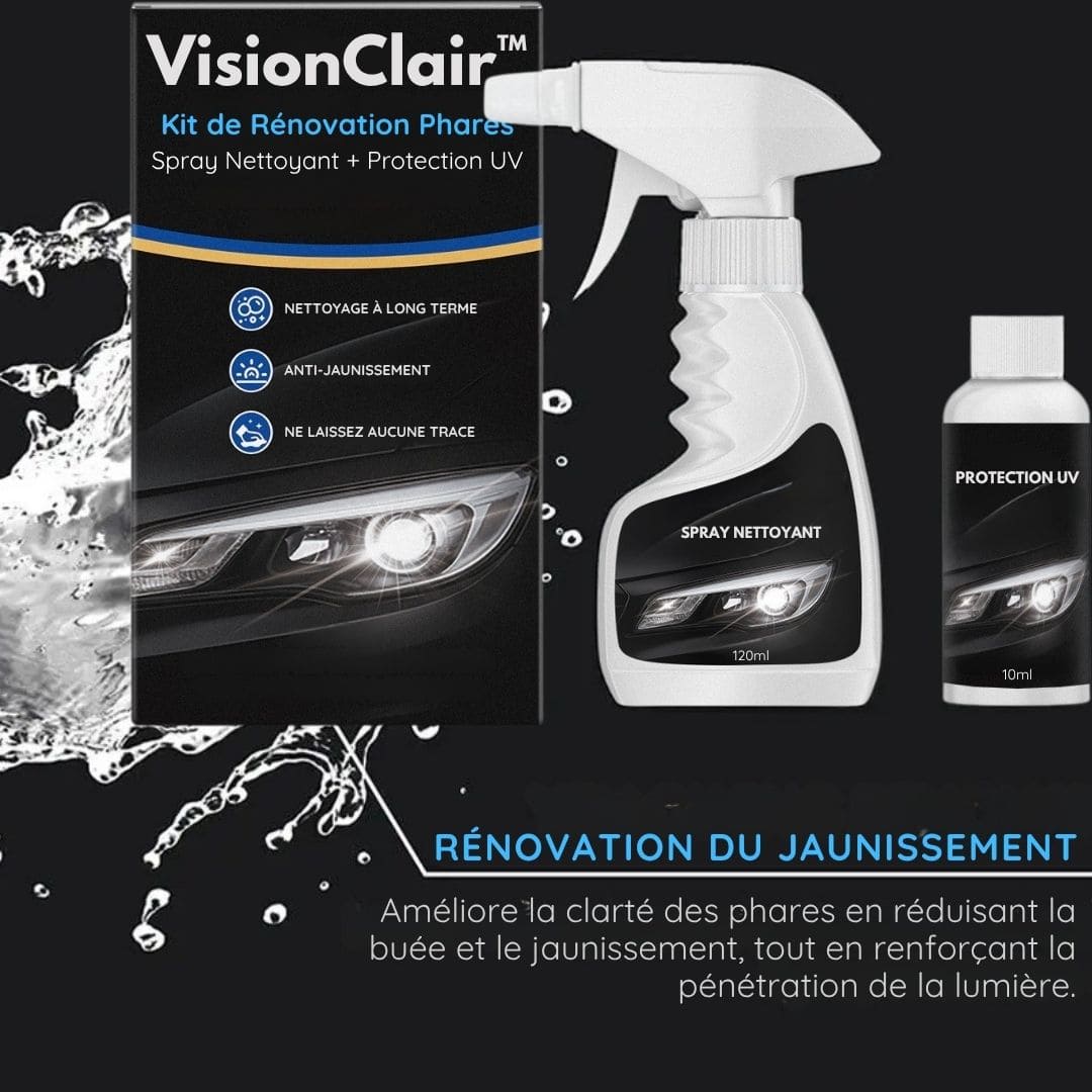 Kit de Rénovation Phares VisionClair™ – Spray Nettoyant + Protection UV