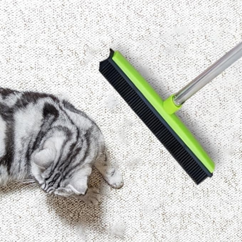 Grâce à sa tête en caoutchouc souple, ce balai attire et retient la saleté au lieu de la disperser comme les balais classiques. Les brins en caoutchouc créent une adhérence électrostatique naturelle qui emprisonne efficacement poils d’animaux, cheveux, miettes et poussière. Il est particulièrement redoutable sur les tapis, moquettes et surfaces où même l’aspirateur échoue.