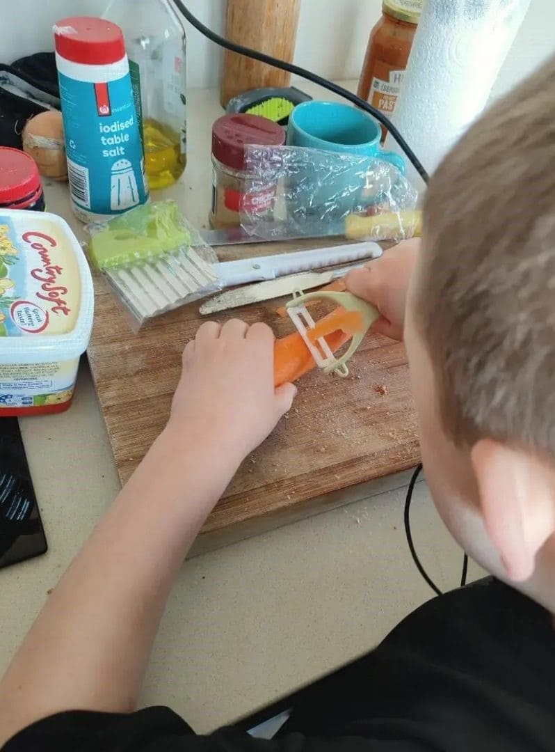 Il peut ainsi découvrir plusieurs techniques de cuisine : découpe, épluchage, façonnage et s’amuser tout en apprenant.